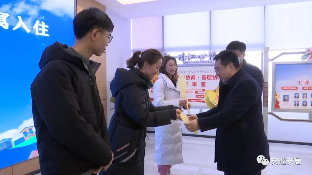 2月25日上午,安居区人才公寓入住启动仪式在区高端人才服务中心举行,区委常委、组织部长李鸿桀为入住人才代表颁发“金钥匙”。
