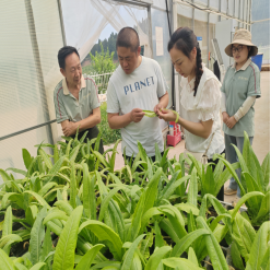 团队一行抵达基地后,立即深入蔬菜种植大棚,通过实地查看、与业主和基地管理人员面对面交流,详细了解种植现状和遇到的问题。针对空心菜出现开花的异常情况,专家们指出这是生殖生长过旺导致,当即给出“良方”:加大空心菜供水量,叶面喷施氮肥补充营养,同时让大棚适当通风降温,调节生长环境,缓解生殖生长态势。