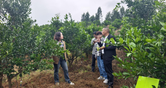 为切实解决基地管理痛点,团队采取“实地查看+座谈交流”模式,与合作社业主深入沟通后,明确当前需重点推进的三项工作。一是优化果园除草施肥管理,针对果园面积大、杂草生长快导致用工成本高的问题,建议增加机械除草投入,在降低人力成本的同时提升除草效果;二是强化病虫害防控,当前基地已出现潜夜蛾、木虱等病虫害,建议推广木虱性诱素黄板应用,充分发挥生物防控技术优势,进一步提升优质商品果率,增强产品市场竞争力;三是做好秋冬果园管护,要求加强果树修剪整形,同步开展技术培训与实操指导,扎实推进冬季防虫封园工作,为来年产业丰产筑牢基础。