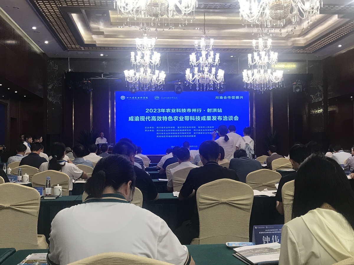 8月31日,四川省农业科学院联合重庆市农业科学院、射洪市人民政府,聚焦“农业科技市州行 川渝合作促振兴”主题,共同主办“2023年农业科技市州行·射洪站 成渝现代高效特色农业带科技成果发布洽谈会”,以促进粮经复合、种养循环,实现科技支撑稳粮增产和农民增收兼得并举。