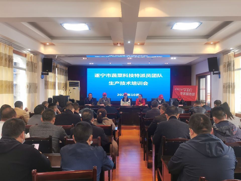 10月28日,遂宁市科技特派员蔬菜团队邀请省园艺总站站长、推广研究员吴传秀、省农科院园艺所研究员房超、省农科院加工所研究员高佳、省农科院植保所副研究员席亚东等一行到射洪市开展蔬菜生产全产业链技术提升专题培训。遂宁市科技特派员蔬菜团队、经作站相关人员,射洪市沱牌镇、洋溪镇、广兴镇、金华镇、香山镇农业服务中心主任、基层农技员、蔬菜业主代表等40余人参加培训。