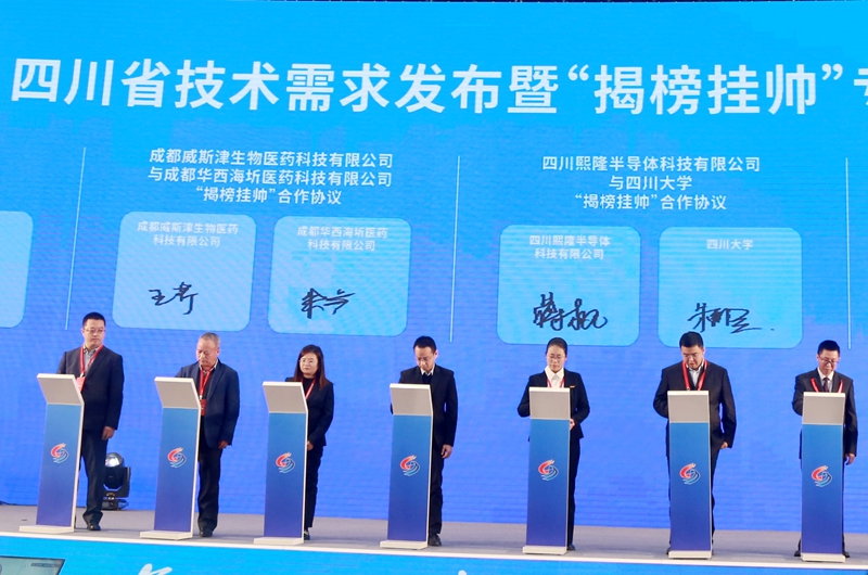 此次科博会还举行了四川技术需求发布暨“揭榜挂帅”专场活动。活动进行了线下“揭榜挂帅”路演,从300项技术需求中,通过专家遴选的方式精选出具有川内代表性的12项重点“揭榜挂帅”项目进行活动现场路演,经过对接洽谈遴选了5个项目现场签约。其中,遂宁四川熙隆半导体科技有限公司与四川大学签订“揭榜挂帅”合作协议,进行基于微波的低功耗均匀群焊技术研究。
