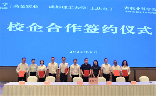 会上,成都理工大学与四川上达电子有限公司,成都大学四川肉类产业技术研究院与四川高金实业集团股份有限公司,四川省农业科学院生物技术核技术研究所与遂宁市安居永丰农业签订了校企合作协议。