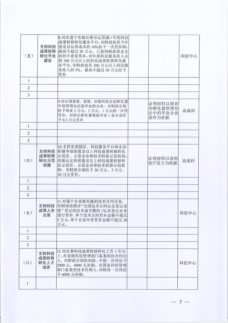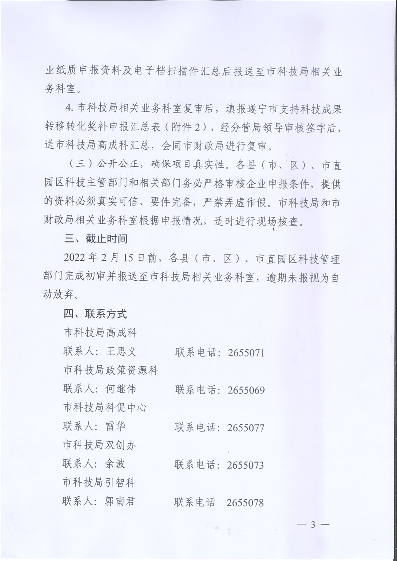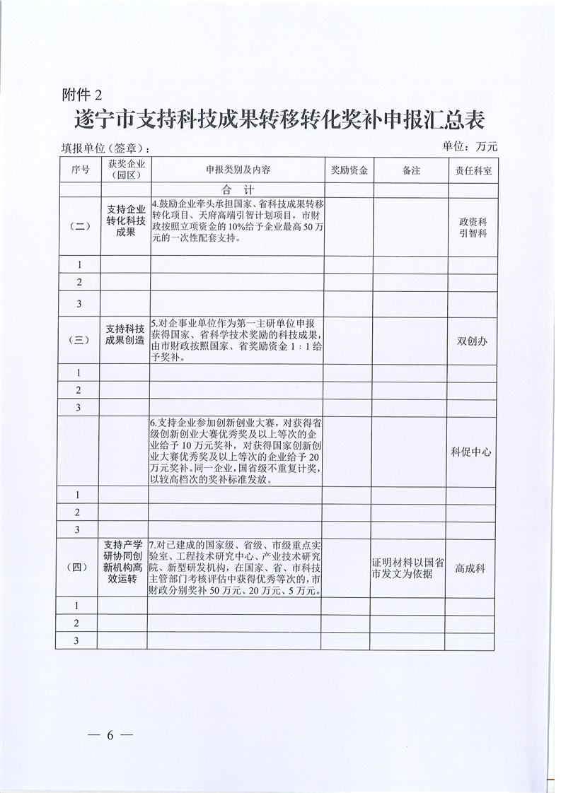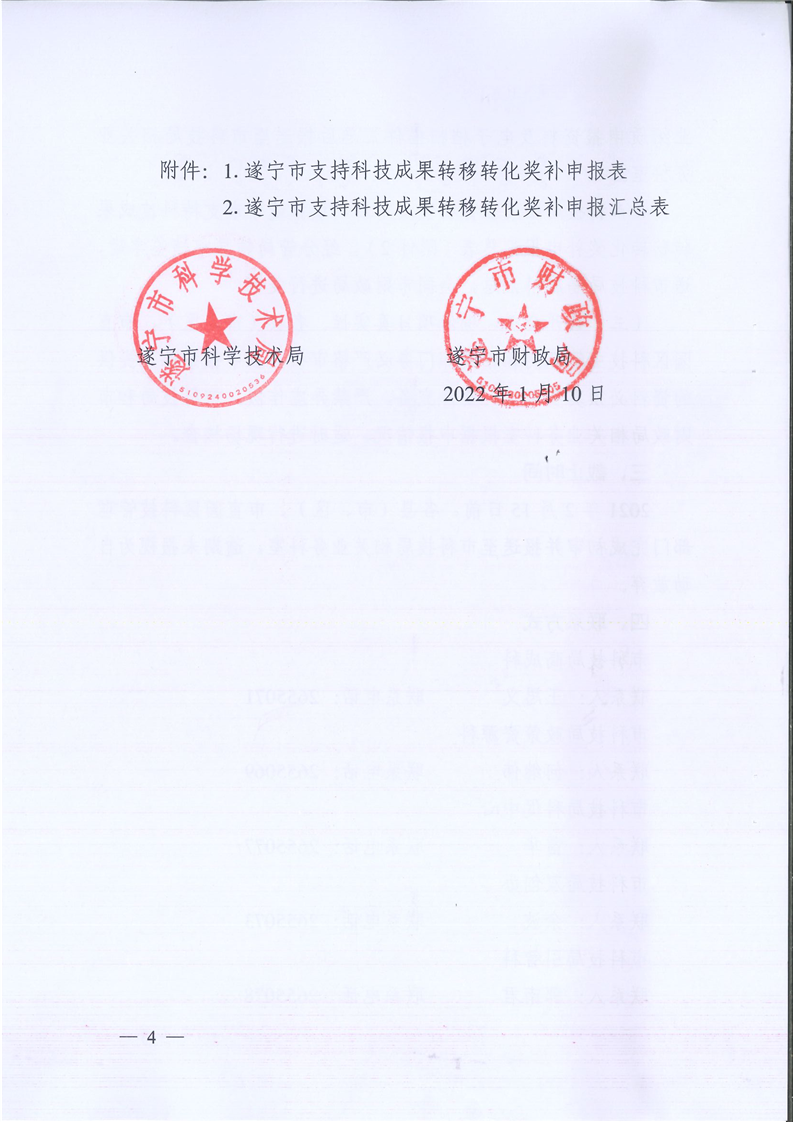 关于做好申报2021年度遂宁市支持科技成果转移转化若干政策奖励有关工作的通知