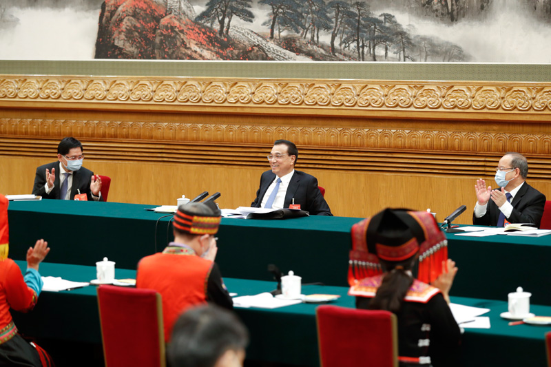 新华社北京3月6日电 中共中央政治局常委、国务院总理李克强6日上午来到他所在的十三届全国人大四次会议广西代表团,参加审议政府工作报告。吴炜、祝雪兰、陈保善等代表就推进工业高质量发展、构建对外开放新格局、发展农村特色产业等先后发言。李克强认真倾听,与大家互动交流。他说,去年,全国上下在以习近平同志为核心的党中央坚强领导下,齐心协力克服种种艰难险阻,疫情防控取得重大战略成果,经济社会发展取得来之不易的成绩,如期打赢脱贫攻坚战,“十三五”经济社会发展主要目标任务胜利完成。广西以习近平新时代中国特色社会主义思想为指导,贯彻党中央、国务院决策部署,各族群众奋力拼搏,去年经济增速超过全国平均水平,民生持续改善,各项工作都有新进展新成效。